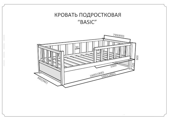 Размер спального места: 180х90 см: