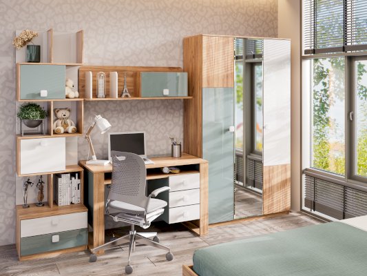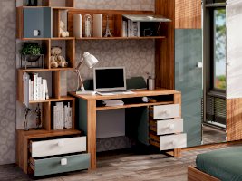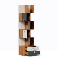 • Над ящиками, система из полок и перегородок, образующих ниши для хранения: 2 ниши 396х328 мм за распашными фасадами и открытые секции, высотой 328 мм