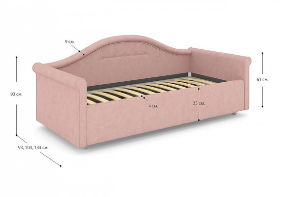 Кровать для девочки с изысканным изгибом спинки и округлыми формами подарят вашему ребенку волшебные мгновения сна. Разнообразие вариантов обивки сделает кровать неповторимой. Модель изготовлена из ДСП. В комплект кровати для девочки входит кроватное основание без опор. Каркас основания выполнен из металла, ламели - из берёзы.