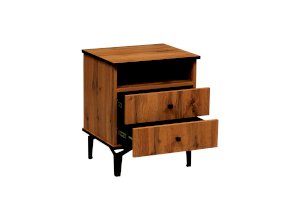 Прикроватная тумбочка содержит три отделения – открытую полку и два выдвижных ящика. Столешница имеет оптимальную высоту – такую, чтобы можно удобно и легко дотянуться и положить вещь, лежа в кровати. На тумбу можно поставить лампу, в открытую полку положить книгу, телефон, планшет – они будут одновременно и под рукой, но в то же время не будут вам мешать. В выдвижных ящиках хорошо хранить документы. Такие тумбочки обычно приобретают в паре – для нее и для него – и ставят по обе стороны двуспальной кровати. Если тумбочка женская, в выдвижные ящики размещают духи, косметику, дамские мелочи, если мужская – бумаги, ежедневники, гаджеты.