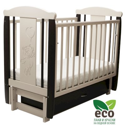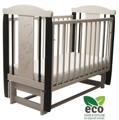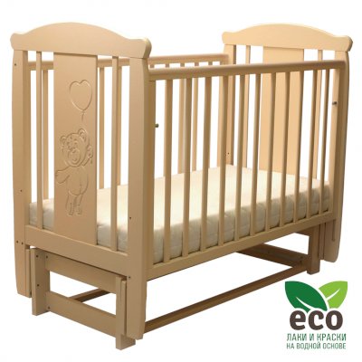 Кроватка "Соня 05" имеет механизм качания продольный маятник. Механизм качания фиксируется. Возможен вариант кровати с ящиком.