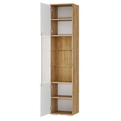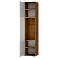 Пенал из коллекции «Тиволи» ПН-03 - идеальный выбор для тех, кто стремится к грамотному зонированию пространства и ценит утонченный дизайн. Стильная модель с белыми фасадами дополнит гостиную или личную комнату. Стеклянная вставка и дает возможность организовать на одной из полок хранение красивых вещиц или аксессуаров.