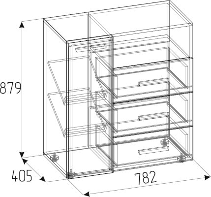 Комбинированная тумба для обуви Nature 89 - удобная и продуманная система хранения обуви для всей семьи. Тумба состоит из трех выдвижных ящиков и отделением за распашной дверцей. За распашным фасадом Контур находятся две полки для хранения обуви, которые находятся наискосок. Полки регулируются по высоте, для этого полкодержатели необходимо установить в подготовленные отверстия. Модуль можно собирать как на левую, так и правую сторону.