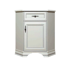 Тумба делится на два отделения, закрывающееся распашной дверцей, и выдвижной ящик.