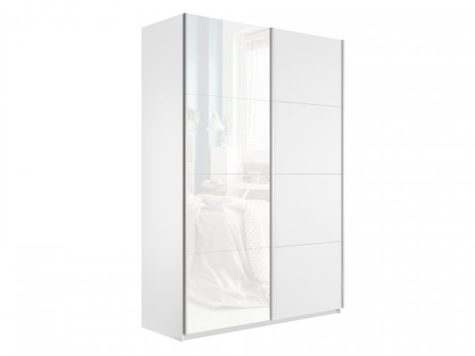 Шкаф-купе 2-х дверный Прайм Белое стекло/Белое стекло 1400х2300х570 мм Белый снег