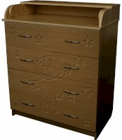 Вам понравится привлекательный внешний вид детского комода. На его лицевой части вы увидите углубленный декор в виде Мишки.