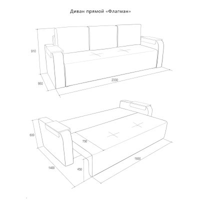 Габариты (ШхГхВ): 2330х950х910 мм