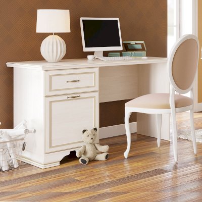 Дизайн стола в классическом стиле позволит ему гармонично вписаться практически в любой традиционный интерьера. Материалы производства ЛДСП и МДФ в виде накладок, декоративных опор и фигурного профиля на столешнице. Золотая патина подчеркивает рельефные детали, а металлические ручки цвета «старая бронза» завершают образ изысканной классической модели.