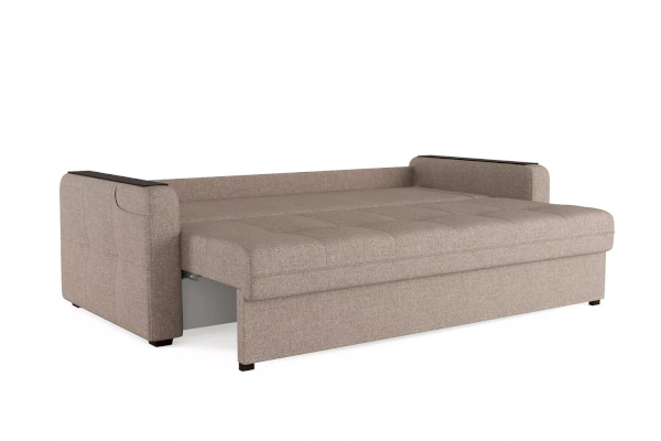 Механизм раскладывания "пантограф" не требует отодвигания дивана от стены и работает из стационарного положения дивана. Благодаря наличию накладок на подлокотники можно положить смартфон или поставить чашку, что обеспечивает полезную рабочую поверхность. В комплекте к дивану можно заказать кресло-кровать или кресло с бельевым ящиком.