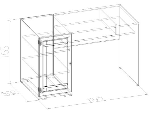 Классический письменный стол можно поставить в гостиную или кабинет. Широкая столешница на 587 мм позволит удобно разместиться с ноутбуком и бумагами. После работы их можно убрать на полку под столешницей. В боковой тумбе две полки, регулируемые по высоте. Их можно не устанавливать и в свободную нишу поставить компьютерный процессор. Высота стола - 765 мм - обеспечит комфортную работу человеку высокого роста.