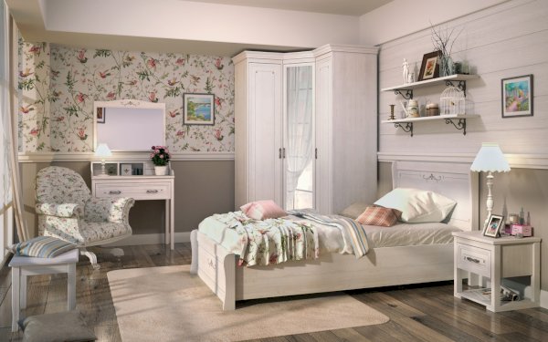 Спальня в стиле прованс  Афродита — фаворит среди интерьеров у мечтательных и романтичных натур, этот стиль отлично подойдет как для квартиры, так и для загородного дома. Он создает очень нежный и даже слегка «воздушный» вид вашей комнаты, где в свойственной французам элегантной манере объединены красота и комфорт. Такая спальня просто создана для приятного отдыха и здорового сна. Она будет окутывать вас своей нежностью, теплом и дарить прекрасное настроение каждый день. Легкий оттенок старины и природная натуральность наполнят ваше сердце гармонией и позволят забыть о суете рабочих будней. Такой интерьер выбирают натуры с чистой и светлой душой, мечтательные и всегда слегка влюбленные.