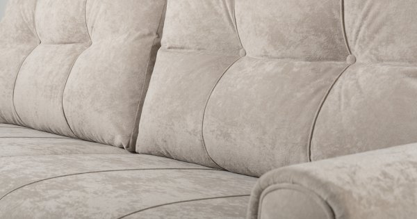 Выполнен в модном мягком велюре ROMANCE оригинальной фактуры. Ткань легко чистится, устойчива к зацепам, обладает повышенной износостойкостью. Благодаря особой технологии гладкого крашения Frozen Flower на поверхности ткани присутствует легкий краш–эффект, подчеркивающий невероятно мягкую фактуру ткани.
