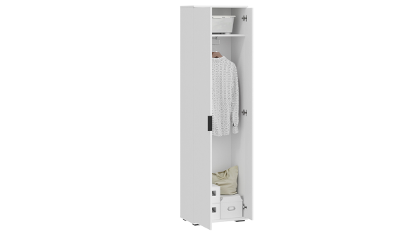 Эвита Шкаф для одежды Тип 1  - закрытый шкаф с выдвижной штангой позволит решить проблему с размещением сезонной одежды. Шкаф коллекции Эвита станет отличным дополнением как для Секции комбинированной Тип 1,  так и для Секции комбинированной Тип 2, что поможет эффективно организовать пространство.