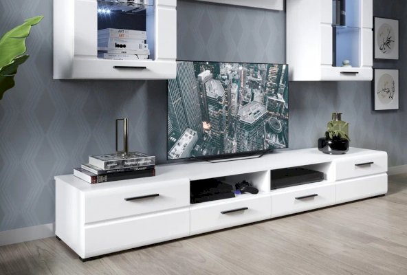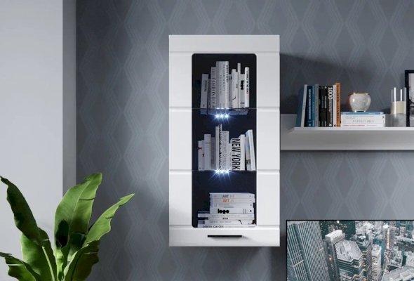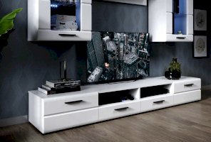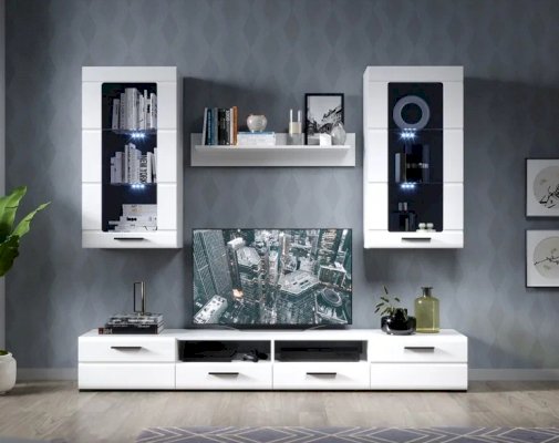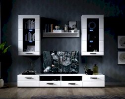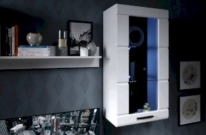 Стенка Рио выполнена в современном стиле. Белые глянцевые фасады из МДФ и витрины с прозрачным стеклом создают в помещении ощущение простора и легкости. Задняя стенка из ЛХДФ Кроношпан (Австрия) черного цвета красиво контрастирует с фасадами и корпусом белого цвета. Светодиодная подсветка сделает акцент на дорогих для Вас вещах, таких как фото, статуэтки или посуда. Мебель выполнена из экологически безопасных и надежных материалов.