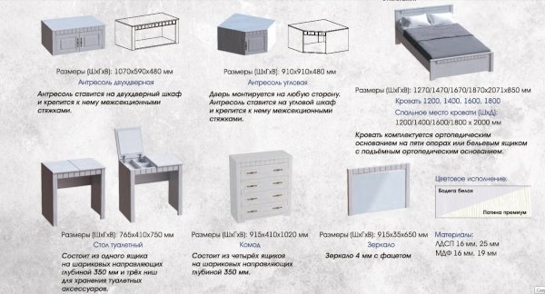 Модульная спальня Прованс (МБГ) - за 42 843 руб. в Коврове. Купите на сайте mebelmarket-kovrov.ru или по телефону 8(800)505-30-63 уже сегодня! Уточнить наличие, комплектацию, актуальную цену можно бесплатно у менеджера ежедневно. Закажите Модульная спальня Прованс (МБГ) до конца акции! Доступна покупка в кредит, рассрочку. Доставим со склада или на заказ.