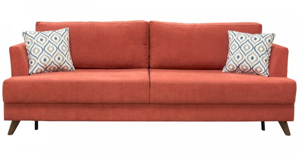 Лаконичный и элегантный диван легко впишется в любой современный интерьер. Из нескольких вариантов обивки вы легко сможете подобрать цветовое решение, подходящее именно вам. Высокие подлокотники и декоративные подушки обеспечивают комфортную посадку.