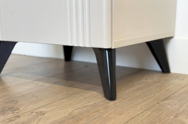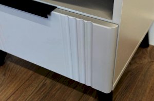 Тумба изготовлена из качественных материалов: корпус выполнен из ЛДСП, что гарантирует прочность и долговечность, а фасад,, выполненный из МДФ в плёнке ПВХ, не только выглядит эстетично, но и защищает тумбу от повреждений. Особое внимание заслуживает фрезеровка фасада, которая придаёт тумбе изысканный вид.