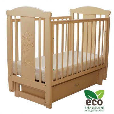 Кроватка "Соня 04" имеет механизм качания поперечный маятник. Механизм качания фиксируется. Возможен вариант с ящиком.