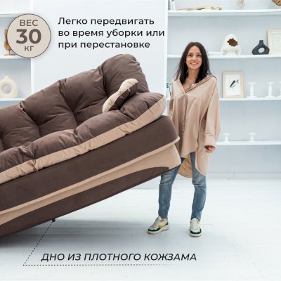 Бескаркасный диван-кровать «Клиффорд» – отличный выбор как диван в гостиную для отдыха всей семьи, так и как детский диванчик. Основа дивана состоит из поролона высотой в 40 сантиметров, а мягчайшая перина из синтепуха дарит непередаваемые ощущения комфорта.