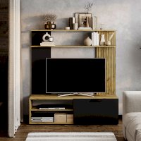 Гостиная "Мишель" - это модель с универсальной конструкцией для современного дома. Фасады в глубоком оттенке "графит" будут отлично контрастировать со стенами в нейтральных или насыщенных холодных тонах. Корпус и поверхности, выполненные в цвете "крафт", хорошо гармонируют с фотопечатью, имитирующей деревянные рейки.