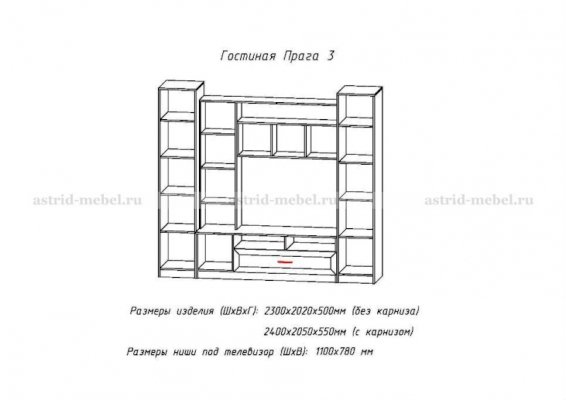 ТВ-секция Прага-3 + Двухстворчатый шкаф Прага-1 + Пенал Прага-1 Корпус: ЛДСП