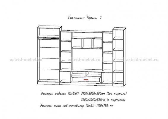 ТВ-секция Прага-1 + Двухстворчатый шкаф Прага-1 + Пенал Прага-1