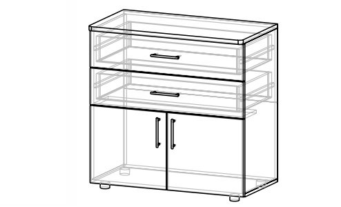 Комод из коллекции системной мебели Валенсия. Эта мебель отличается элегантным стилем и позволяет создавать классические предметы интерьера для гостиной, столовой, спальни или офиса. У модели две дверцы и два практичных ящика.
