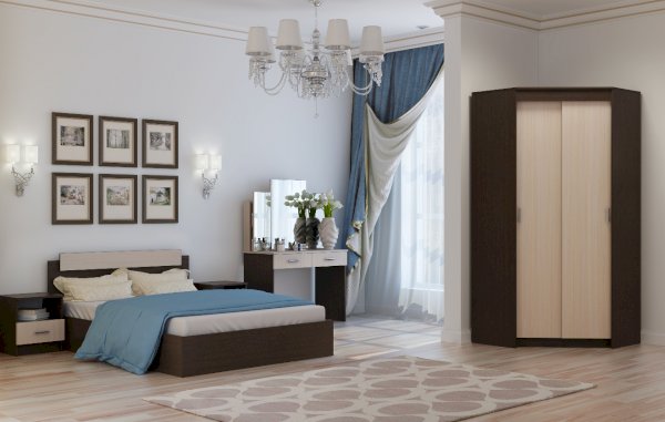 Модульная система для спальни "София" - это модульная программа для спальни, имеющая в своем составе большой выбор элементов для грамотного составления спального набора. Фасады светлых декоров комбинируются с тёмным корпусом.