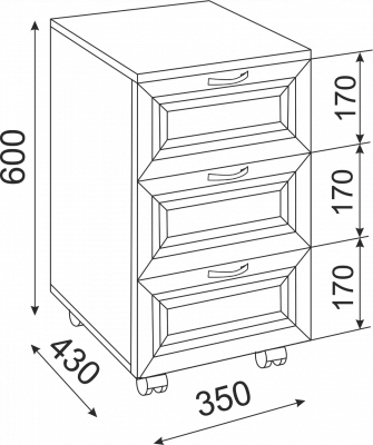 Модель тумбочки приставная к столу / для хранения документов