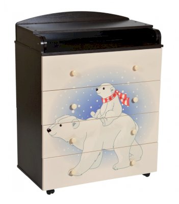Пеленальный комод 800/4 Lilu 1 отличается привлекательным дизайном с использованием тематических детских принтов. В конструкции изделия предусмотрены 4 маленьких передвижных колеса, несколько вместительных ящичков на шариковых направляющих и откидывающаяся пеленальная столешница. Детский пеленальный комод, декорированный красочным рисунком, вмещает в себя постельные принадлежности, средства гигиены, распашонки, подгузники, игрушки, ползунки и другие личные вещи ребенка. Гладкая столешница идеально подходит для пеленания ребенка, а колесики позволяют быстро перемещать комод.