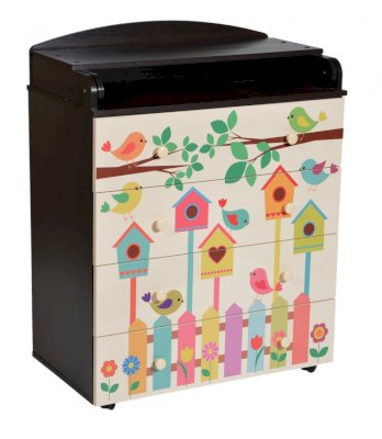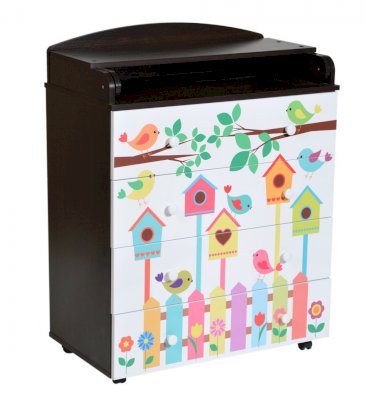 Пеленальный комод 800/4 Lilu 3 отличается привлекательным дизайном с использованием тематических детских принтов. В конструкции изделия предусмотрены 4 маленьких передвижных колеса, несколько вместительных ящичков на шариковых направляющих и откидывающаяся пеленальная столешница. Детский пеленальный комод, декорированный красочным рисунком, вмещает в себя постельные принадлежности, средства гигиены, распашонки, подгузники, игрушки, ползунки и другие личные вещи ребенка. Гладкая столешница идеально подходит для пеленания ребенка, а колесики позволяют быстро перемещать комод.