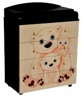 Пеленальный комод 800/4 Lilu 5 отличается привлекательным дизайном с использованием тематических детских принтов. В конструкции изделия предусмотрены 4 маленьких передвижных колеса, несколько вместительных ящичков на шариковых направляющих и откидывающаяся пеленальная столешница. Детский пеленальный комод, декорированный красочным рисунком, вмещает в себя постельные принадлежности, средства гигиены, распашонки, подгузники, игрушки, ползунки и другие личные вещи ребенка. Гладкая столешница идеально подходит для пеленания ребенка, а колесики позволяют быстро перемещать комод.