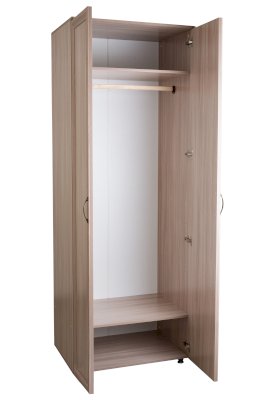 Простой вместительный шкаф, внутри 2 полки, штанга под одежду. Может комплектоваться полками. Эта модель дополнена зеркалами.